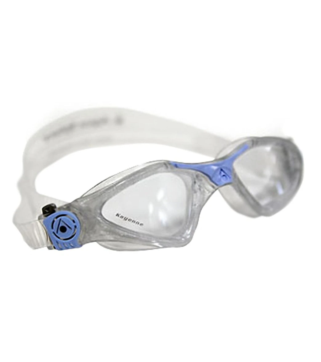 The sleek, low-profile AquaSphere Kayenne Clear Lens Goggle gives you the comfortable fit and wide range of vision you need to work through a long session in the pool in comfort.