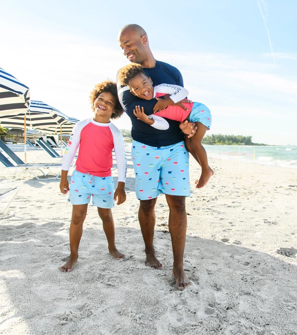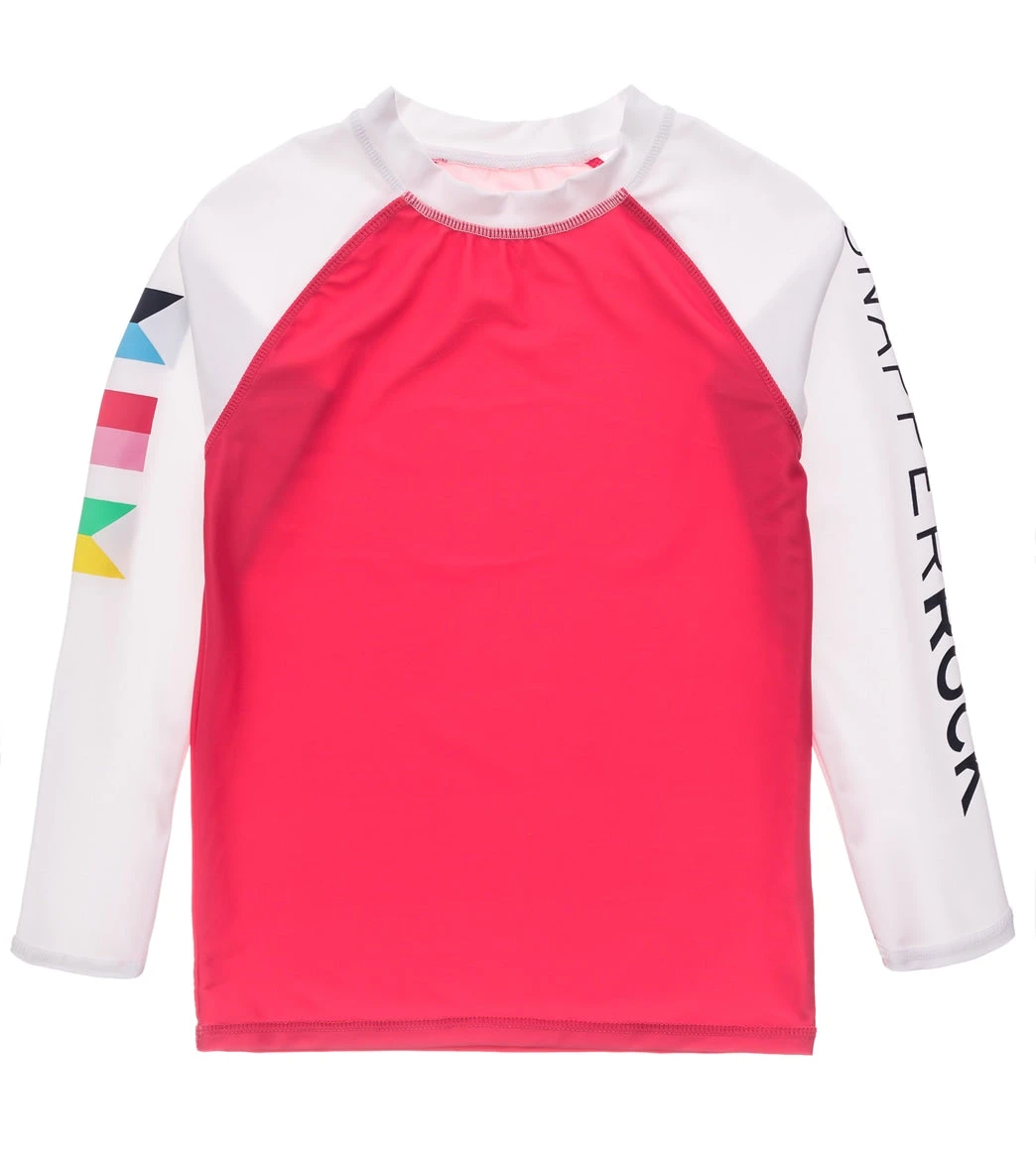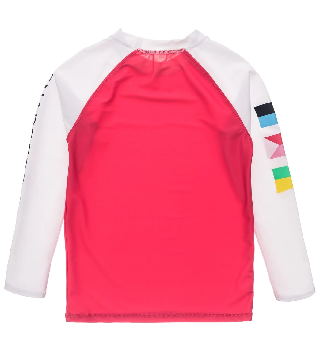 Protect your child’s skin while they play all day in the Snapper Rock Boys’ Maritime Fliers Long Sleeve Rash Guard.