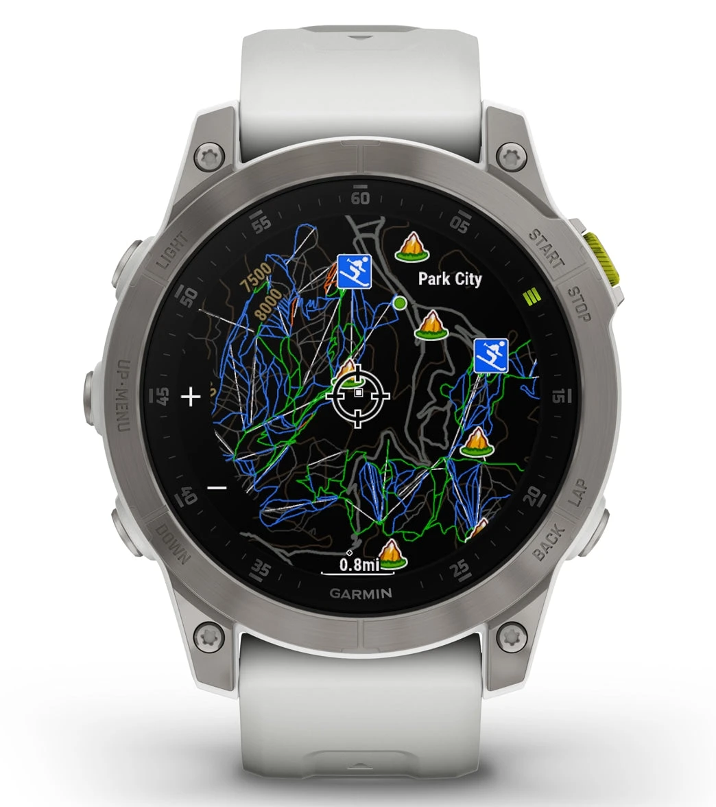 - Always-on Touchscreen Amoled Display; Multi-Band Frequency Support; Real-Time Stamina; SkiView Maps; Titanium Bezel