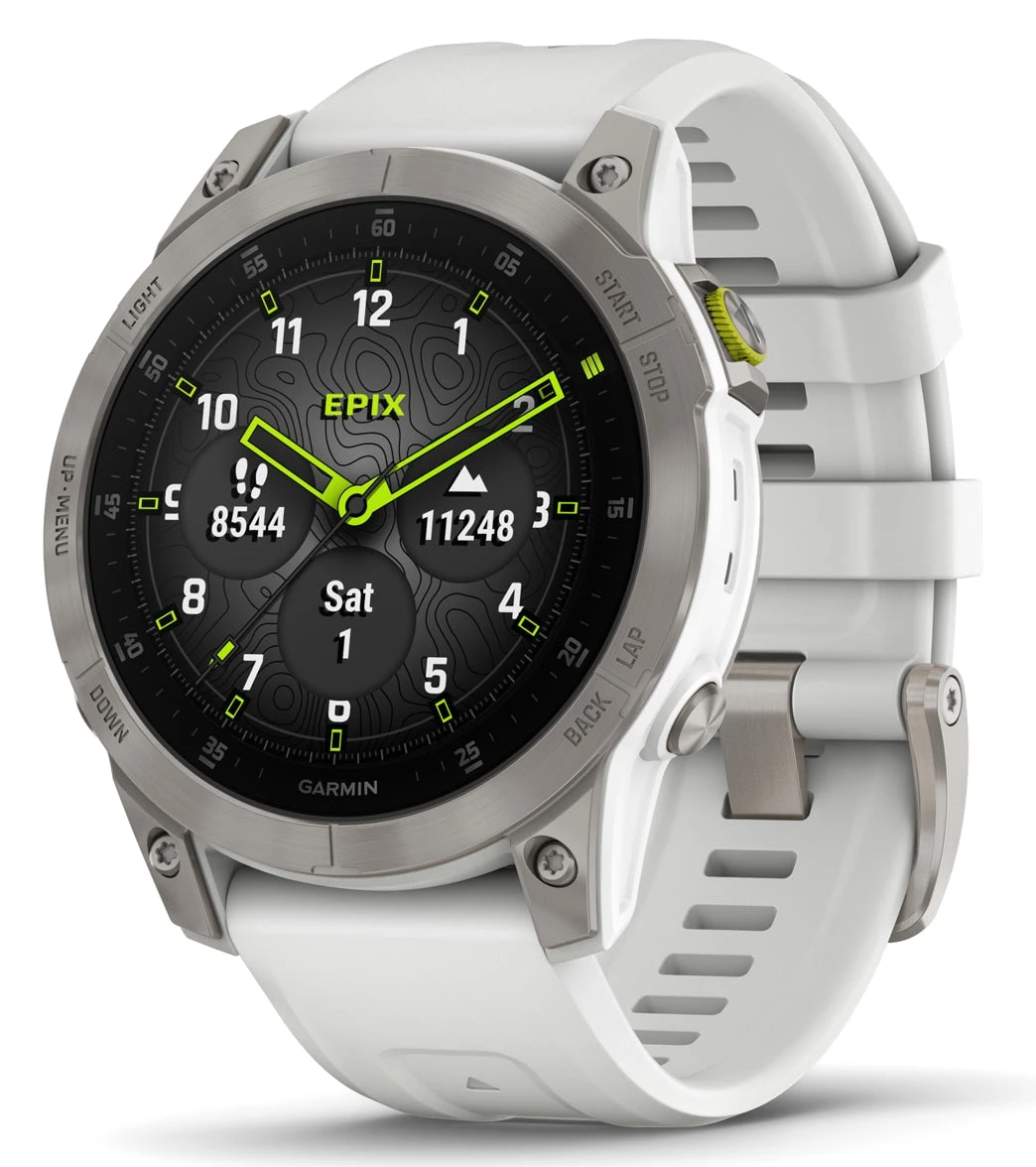 Wear epix (Gen 2), be epic. With epix, the premium active smartwatch, you can take on every day with the stunning AMOLED display and up to 16 days of battery life in smartwatch mode. Stay connected with smart features, music storage and get even more functionality on the wrist with Garmin Pay contactless payments in supported countries and payment networks. Understand your body with 24/7 health and wellness monitoring features that track Pulse Ox, heart rate, respiration and more (this device is intended to be an estimation of your activity and metrics; it is not a medical device). Train how you want with 30+ built-in sports apps, and take it further with performance metrics and Garmin Coach training plans. When you’re ready for adventure, you can download TopoActive mapping via Wi-Fi� connectivity, or get it preloaded on Sapphire editions. Plus, Sapphire editions support multi-band GNSS technology for stronger, better, more accurate positioning in challenging environments.