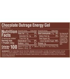 Maltodextrin, Water, Fructose, Peanut Butter (Peanuts, Salt), Organic Cocoa Liquor, Leucine, Sea Salt, Sodium Citrate, Potassium Citrate, Valine, Ascorbic Acid (Vitamin C), Calcium Carbonate, Histidine, Green Tea (Leaf) Extract (Contains Caffeine), Sodium Benzoate (Preservative), Calcium Chloride, Fumaric Acid, Potassium Sorbate (Preservative), d-alpha-Tocopheryl Acetate (Vitamin E), Pectin Powder, Isoleucine, Citric Acid, Malic Acid, Ginger Extract, Chamomile Extract. 20mg of caffeine.