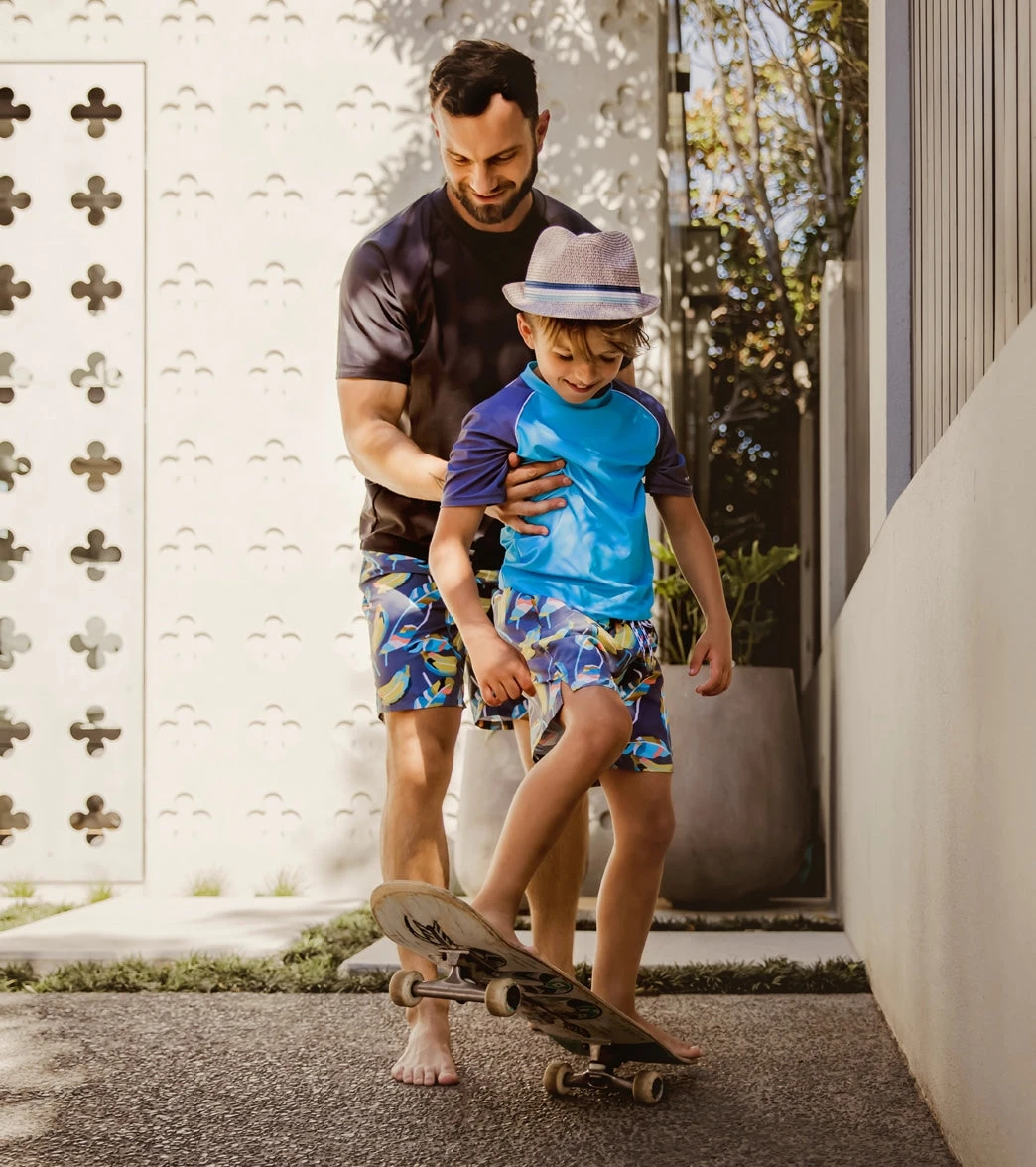 Sun, sand and style, The Going Bananas Swim Trunks are perfect for the waves. Made in designer sunset colThes, in The signature print – great for resort wear.