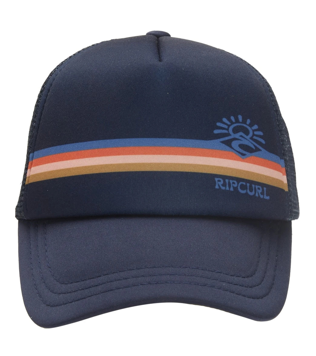 A classic beach cap, the Rip Curl Girls’ Melting Waves Trucker Hat features a curved peak, mesh backing with adjuster, and our Melting Waves Collection’s retro yardage with swim match backs to complete the look.