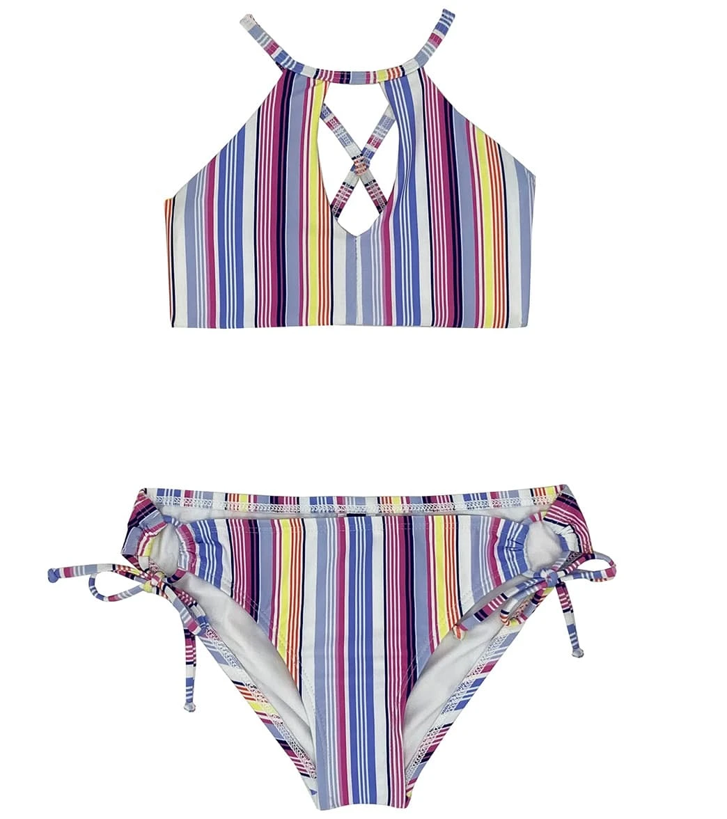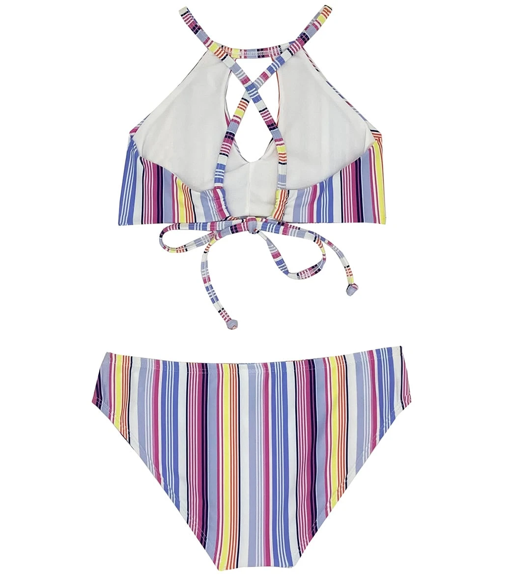 Look vibrant in the Splendid Girls’ La Paz High Neck Two Piece Bikini Set (Big Kid) .