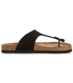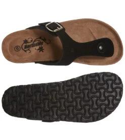 - Soft natural suede upper features one strap thong on trend design with metal pin buckle